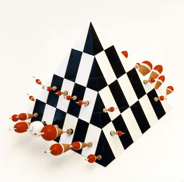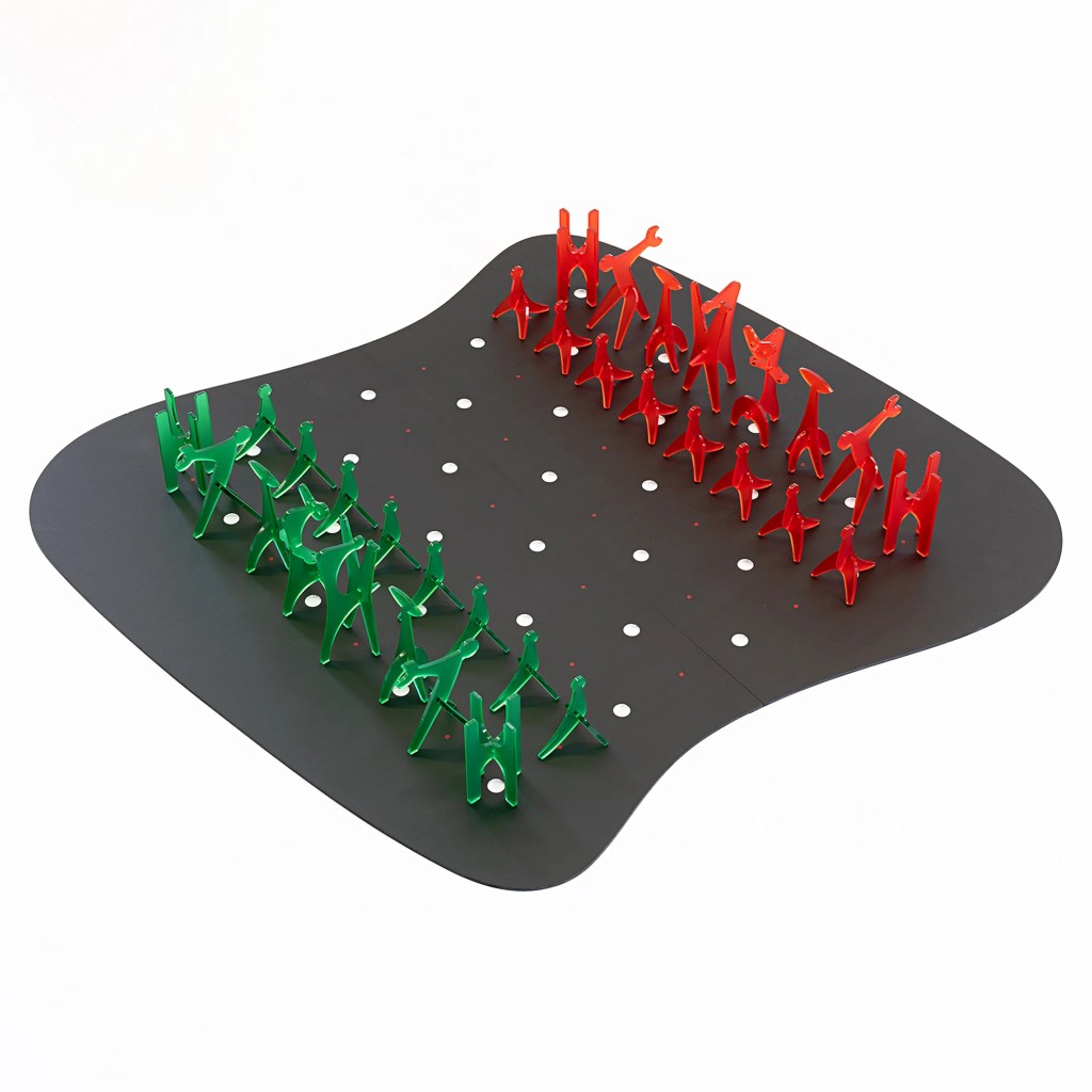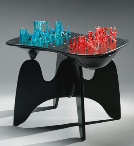 “Yooooo Mom Noguchi made a chess set” was my reaction when I discovered this sick piece. One of my all-time favourite designers innovating one of my all-time favourite things, so awesome. Noguchi’s set stays true to his minimalist aesthetic, pieces are simple, with conceptual geometries, stripped down to their essential shapes, and at the same time pay homage to traditional forms. The rook is still square, the knight still incorporates the signature bend of the horse’s neck, and the king still has its crown. Additionally, the weight of these pieces and smoothness of their surfaces, adds a distinct tactile dimension to the gameplay. Noguchi’s set is unique because it not only innovates the board and pieces and but the entire game area. He made a whole fricken table.