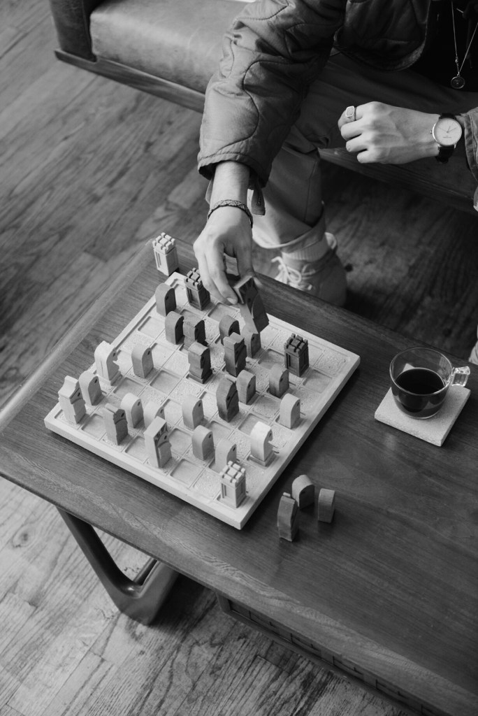I call these scary chess sets because they make ya boy quiver. Hella dramatic, brutalist, could maybe give you tetanus – all these sets manage to convey a sense of architectural grandeur within chess’s constrained playing field. These sets boast bold, geometric forms and a sense of solidity. They celebrate the unique tactile and physical beauty of materials like concrete, metal, and stone. The pieces exude robustness and weightiness that demand attention and respect. They are defiantly a look for some typa of person.